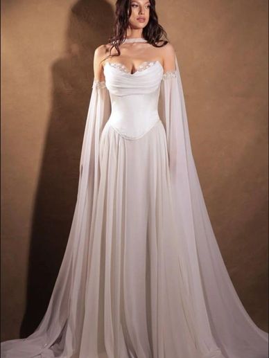 تميّزي بإطلالة تخطف الأنظار مع هذا الفستان الأبيض الفاخر المصمم ليجمع بين الأناقة والأنوثة. يتميز الفستان بأكتاف منسدلة تنسدل برقة على الذراعين، مع قصة خصر مشدودة بمشد داخلي مدمج يمنح قوامًا متناسقًا وجاذبية راقية.