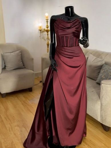أبهري الجميع في مناسبتك الخاصة مع هذا الفستان الخمري الفاخر الذي يجمع بين الأناقة العصرية واللمسة الكلاسيكية الساحرة.